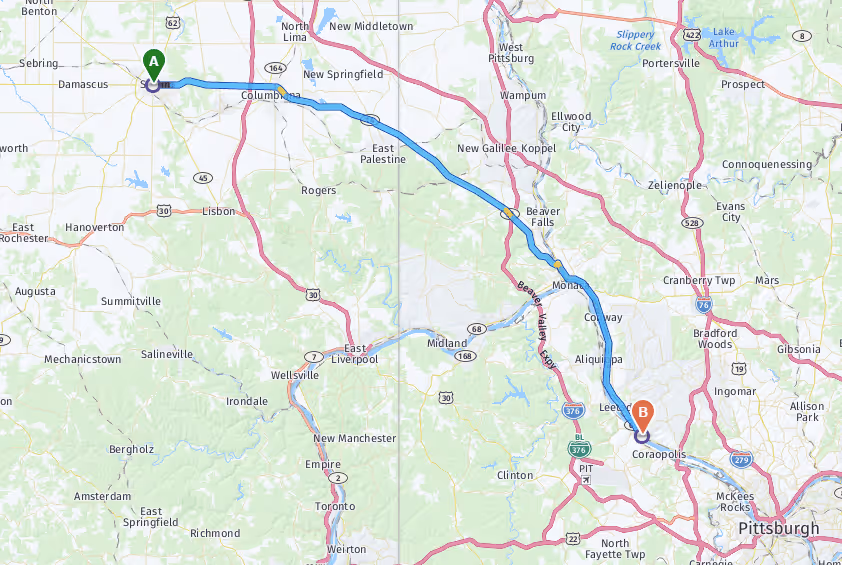 - Continue on Ohio River Blvd (PA-65)