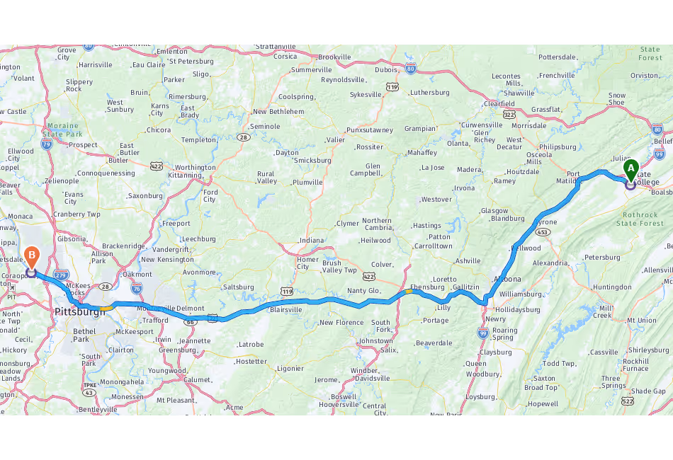 Driving Directions to Sewickley from State College, PA