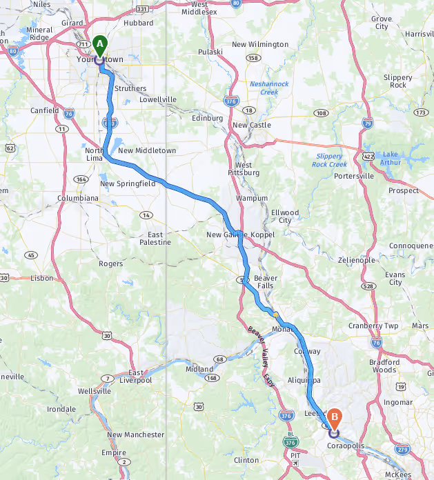Driving Directions to Porsche Sewickley from Youngstown, OH